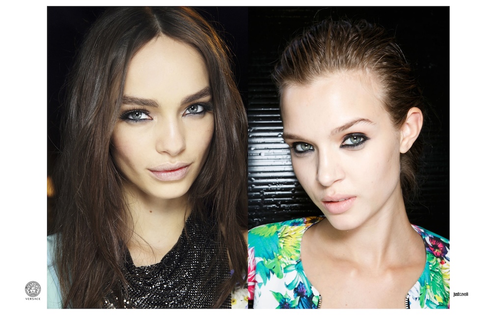 Kao što znamo, crni tuš definitivno nije novost, no ovog puta nosi jasnu poruku i stav. Nanešen uz donji i gornji unutarnji rub oka te lagano razmazan, uz minimalan ostatak make upa na ostatku lica svakako je osnažio slobodu izražavanja. Versace, Just Cavalli, Carven, Blugirl